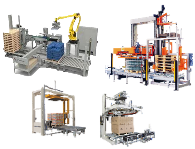 Paletizadores y envolvedoras de pallets de diversos tipos:
